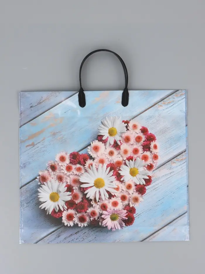 Пакет "Ромашковое сердце", полиэтиленовый с пластиковой ручкой, 38 х 34 + 3 см, 90 мкм