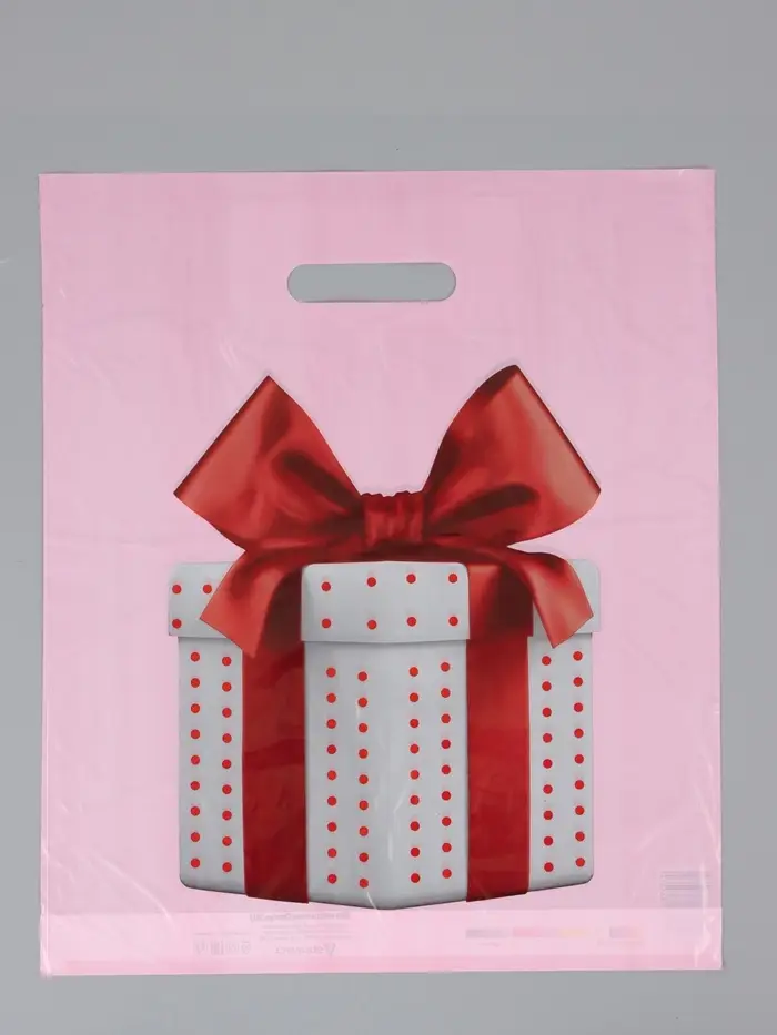 Пакет "Красный бант", полиэтиленовый с вырубной ручкой, 36 х 43 + 3 см, 35 мкм