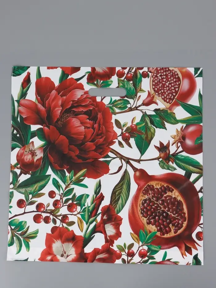 Пакет "Цветок Граната", полиэтиленовый с вырубной ручкой, 45 х 45 + 3 см, 65 мкм