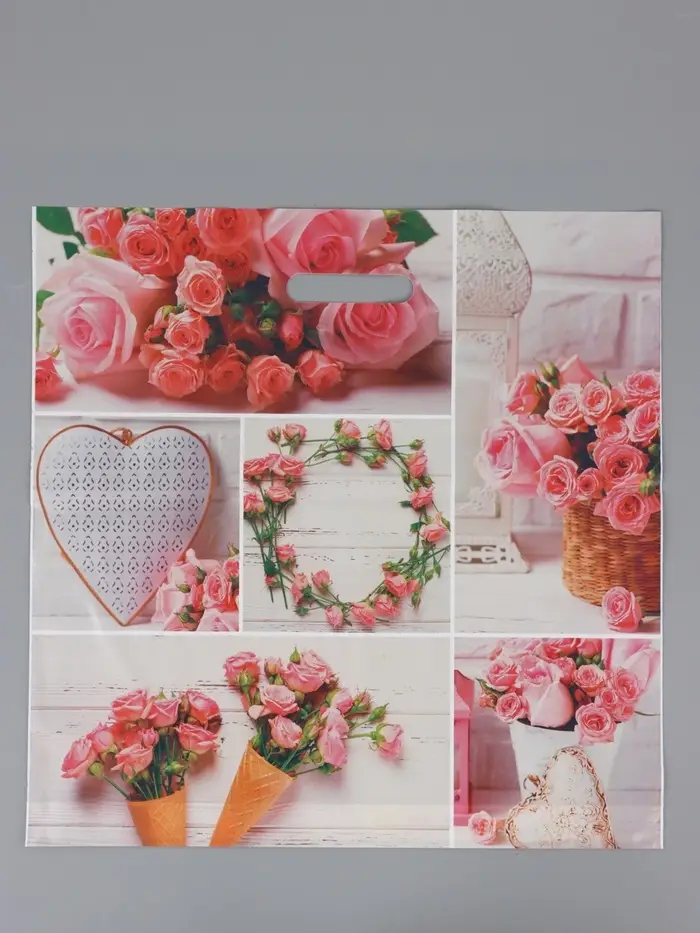 Пакет "Романтичная роза", полиэтиленовый с вырубной ручкой, 45 х 45 + 3 см, 65 мкм