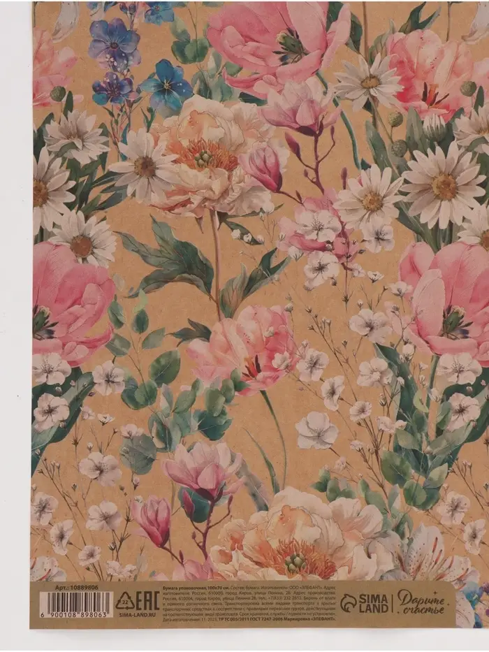 Бумага упаковочная крафтовая «Цветы», 70 × 100 см