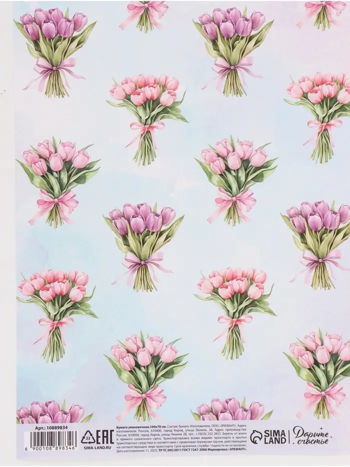 Бумага упаковочная глянцевая «Букетик цветов», 70 × 100 см