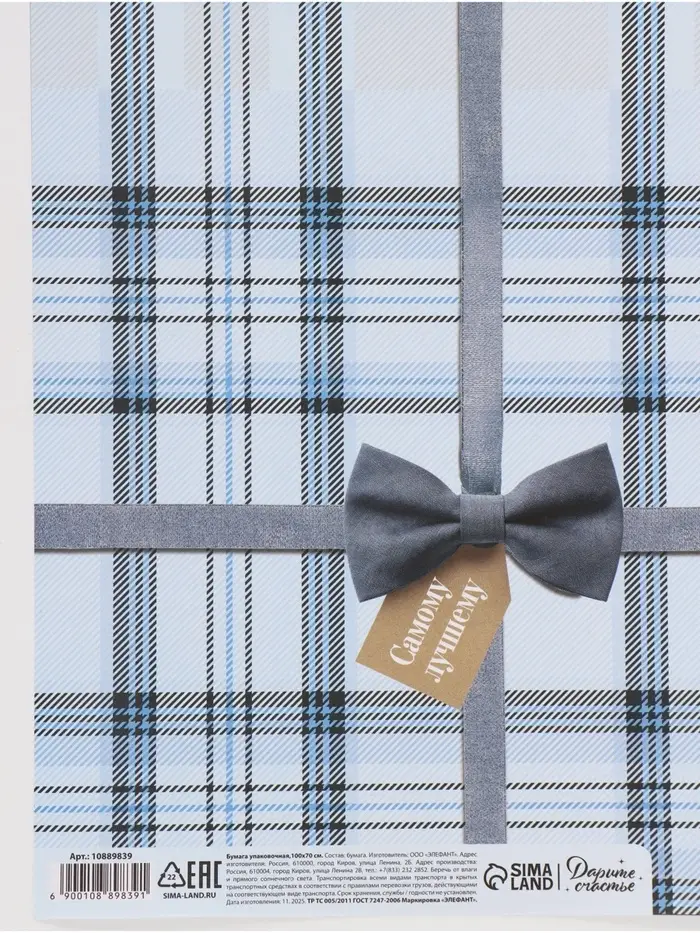 Бумага упаковочная глянцевая «Клеточка», 70 × 100 см