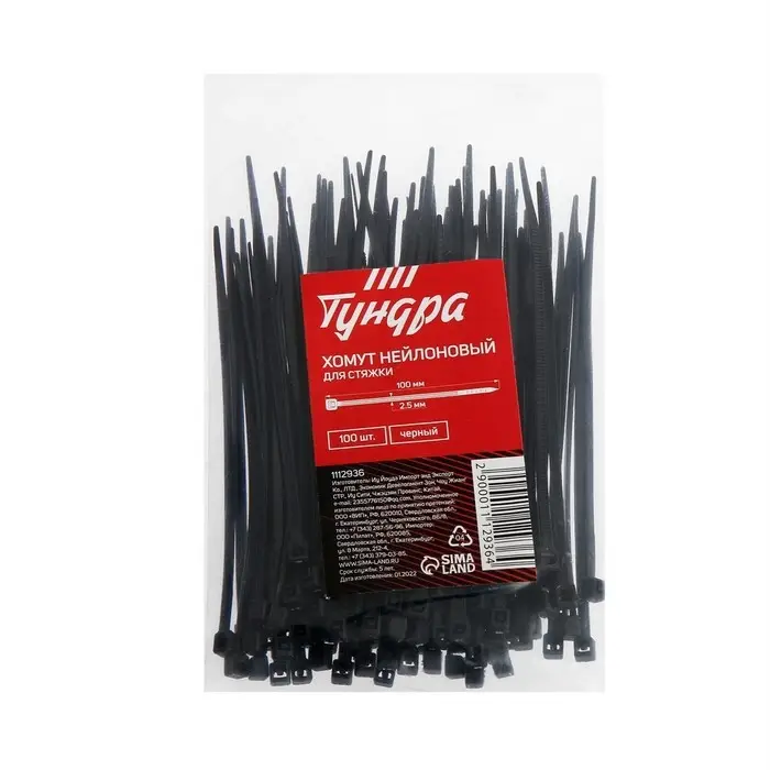 Хомут нейлоновый для стяжки, ТУНДРА, 2.5×100 мм, черный, 100 шт.