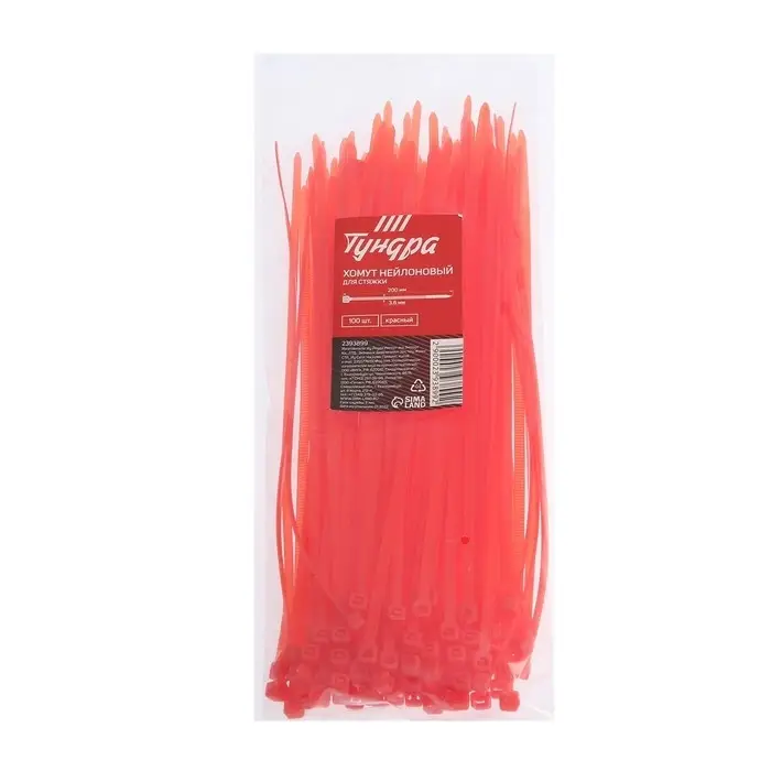 Хомут нейлоновый для стяжки, ТУНДРА, 3.6×200 мм, красный, 100 шт.