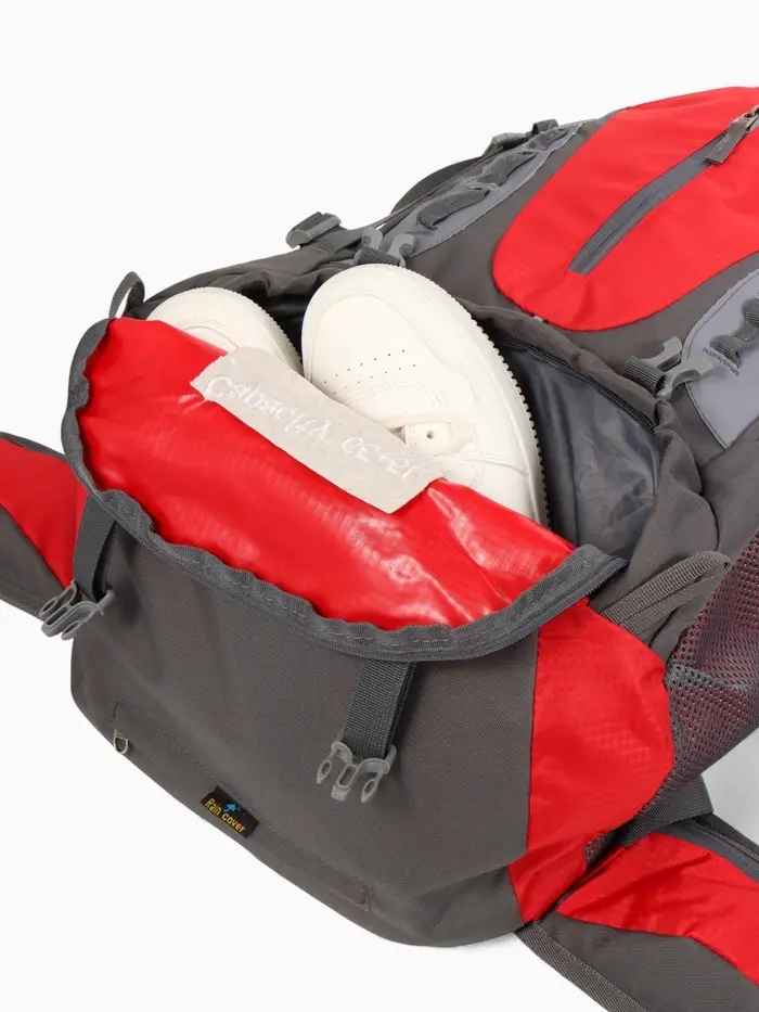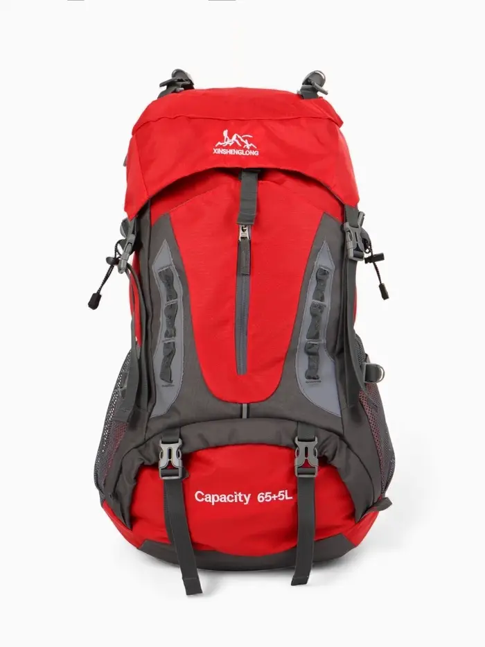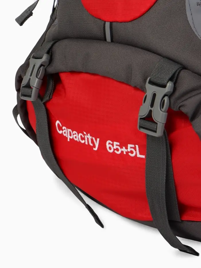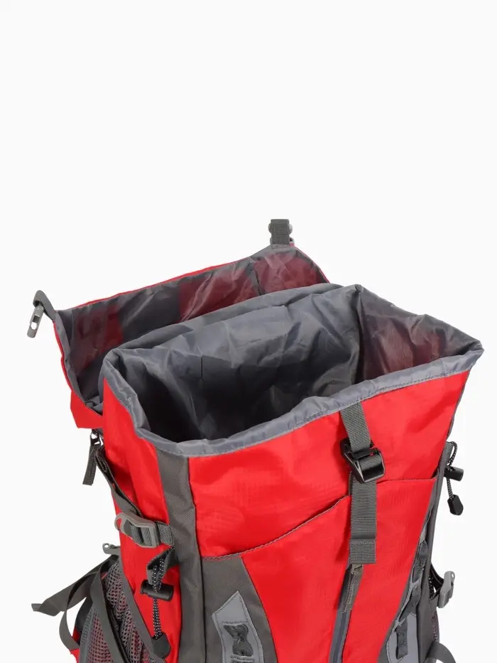 Рюкзак тур 65+5л, 30*20*53, отдел на шнурке, 5нар+2вн кармана, цвет красный