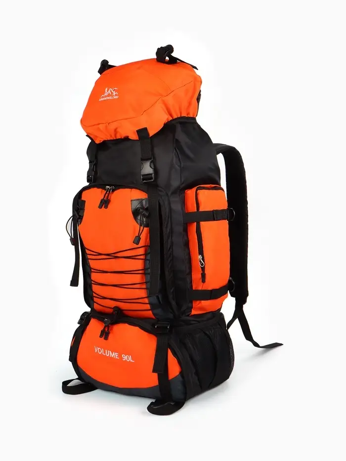Рюкзак тур 90л, 33*22*65, отдел на шнурке, 6 нар карманов, цвет оранжевый