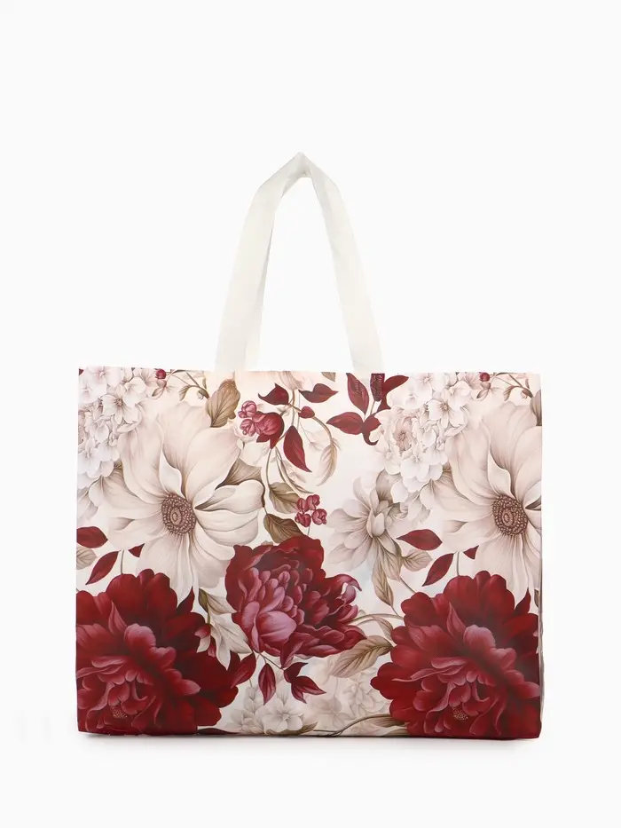 Сумка пляжная Цветы, 50*20*40, отд без молнии, бордовый