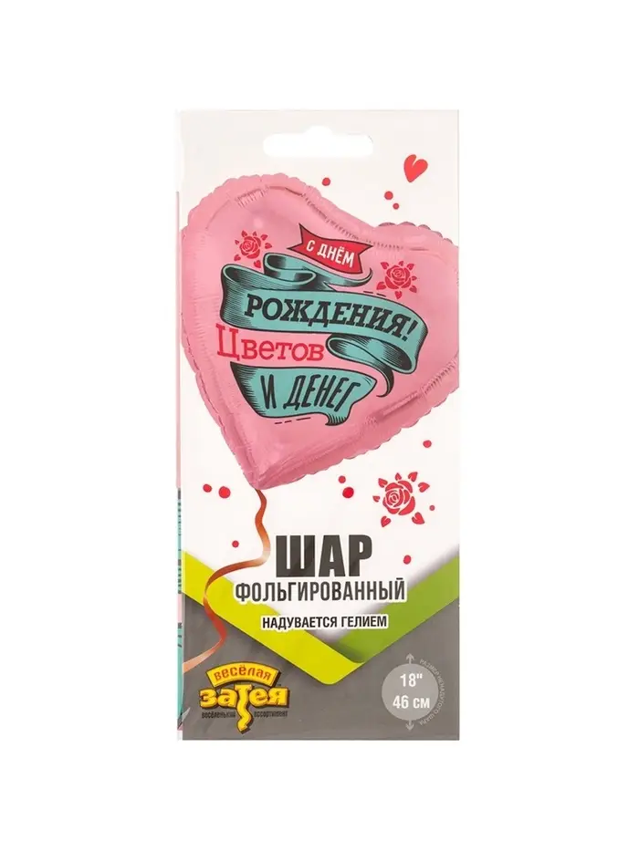 Воздушный шар фольгированный 18" «С днём рождения. Цветов и денег. Сердце»