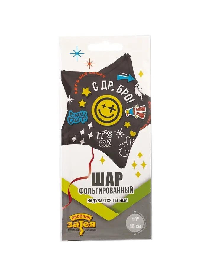 Воздушный шар фольгированный 18" «С Днём рождения Бро. Звезда»