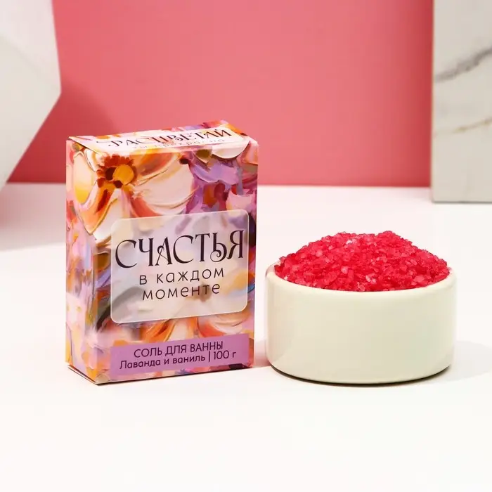 Соль для ванны «Счастья в каждом моменте!», 100 г, аромат лаванда и ваниль