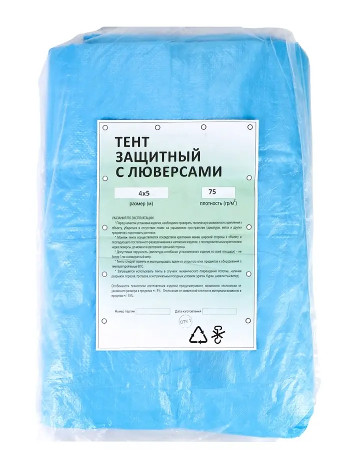 Тент защитный 75г/м2, УФ, 4х5м, тарпаулин, синий
