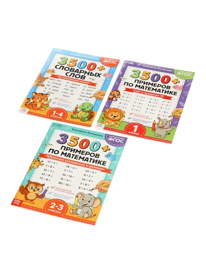 Набор книг "З500 примеров по русскому и математике" 3 шт по 24 стр.