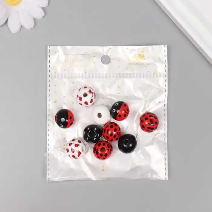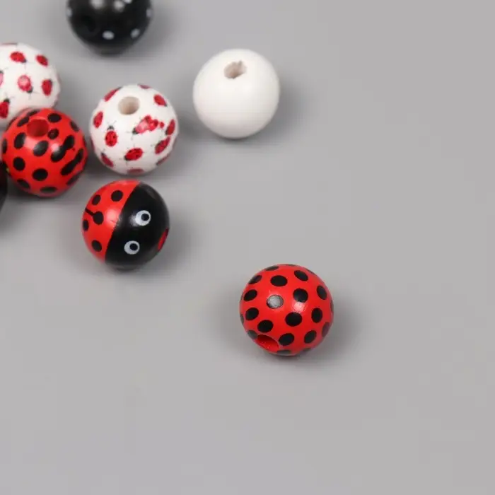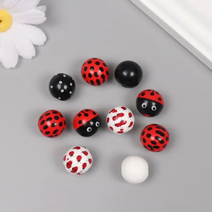 Бусины для творчества дерево "Божья коровка" набор 10 шт 1,6х1,6х1,6 см