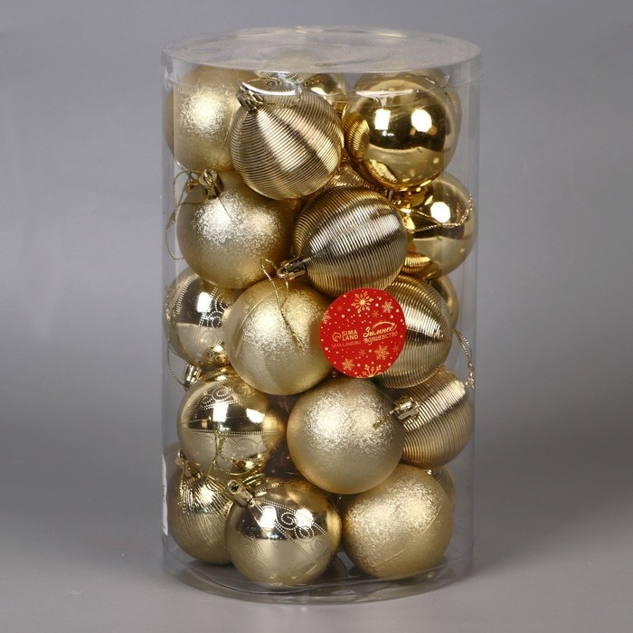 Набор шаров пластик d-6 см, 25 шт "Ассорти - ажур" золото