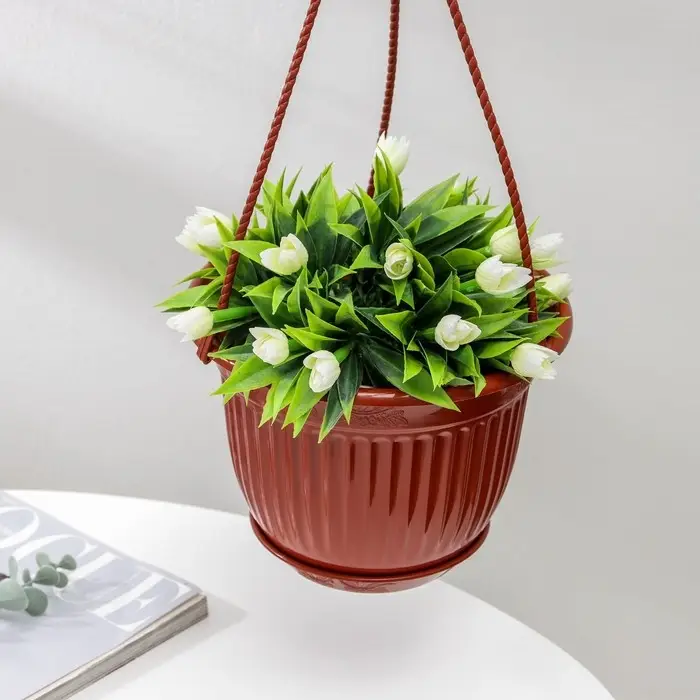 - Малый вес. С лёгкостью переносите горшки и кашпо с места на место, ставьте их на столики или полки, подвешивайте под потолок, не беспокоясь о нагрузке.