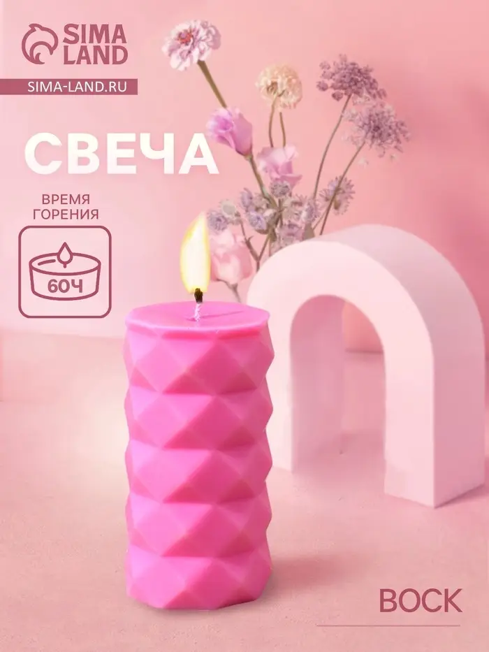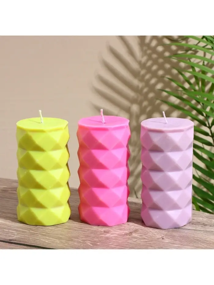 Свеча "Столб ромбики" 6х6х12 см, соевый воск, микс