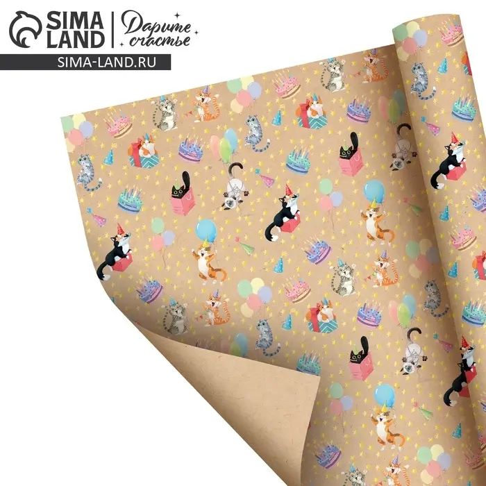 Бумага упаковочная крафтовая «С Днём рождения!», 70 × 100 см