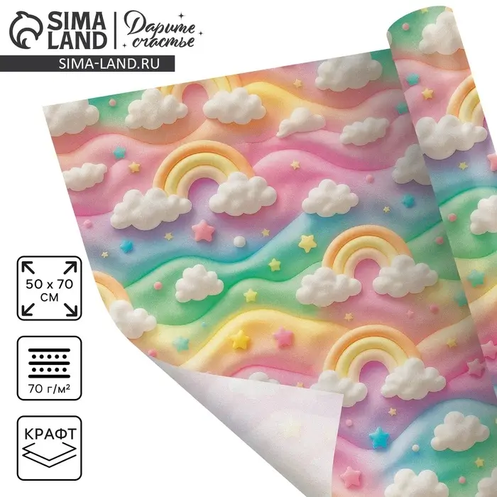 Бумага упаковочная крафтовая «Зефир», 50 × 70 см