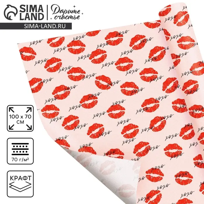 Бумага упаковочная крафтовая «Поцелуи», 70 × 100 см
