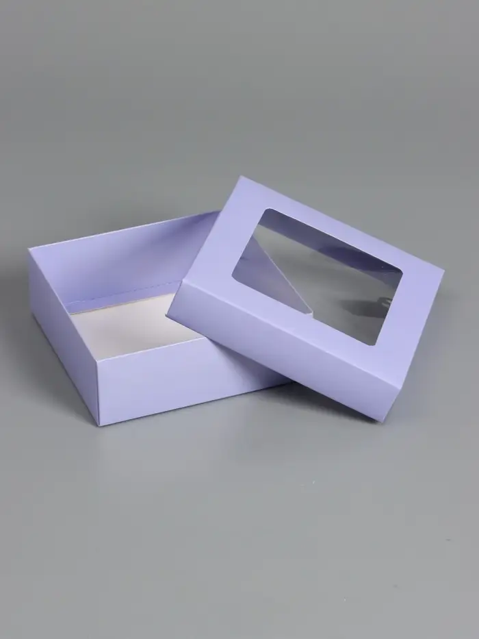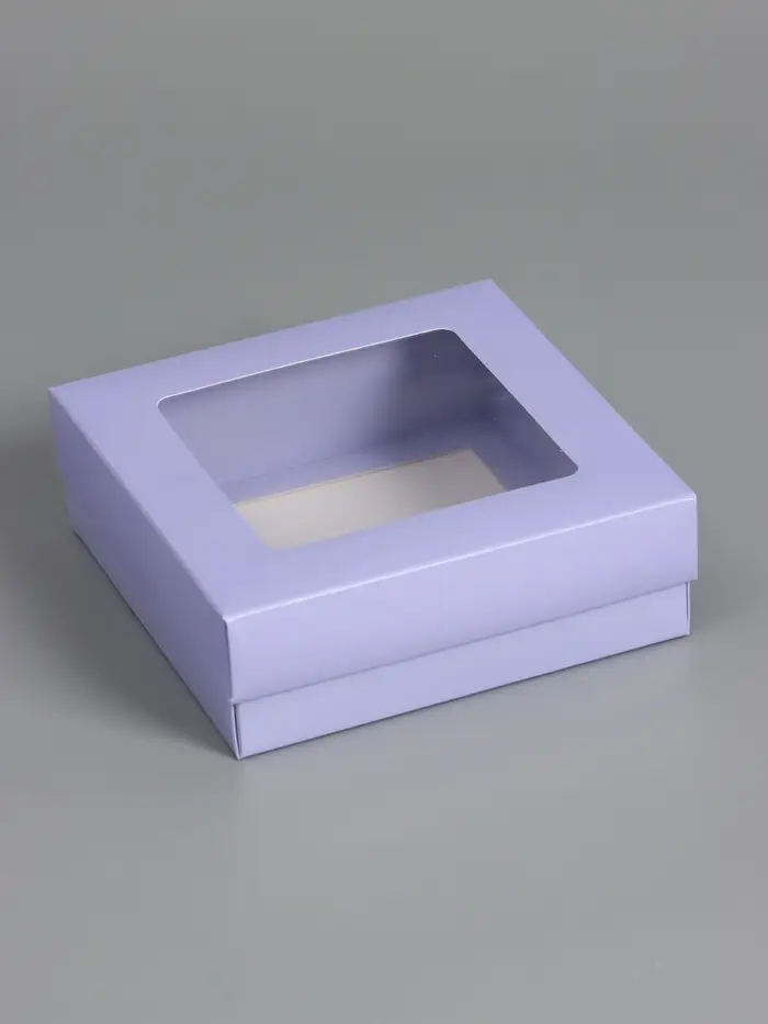 Коробка складная, крышка-дно,с окном, сиреневая, 15 х 15 х 5 см