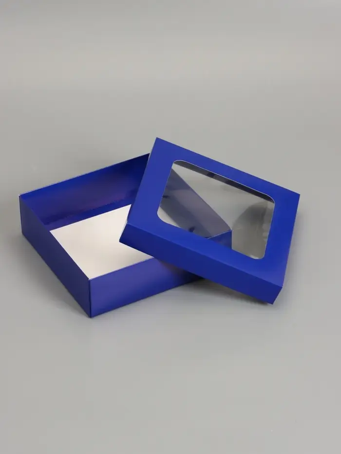 Коробка складная, крышка-дно, синяя, с окном 20 х 20 х 6 см