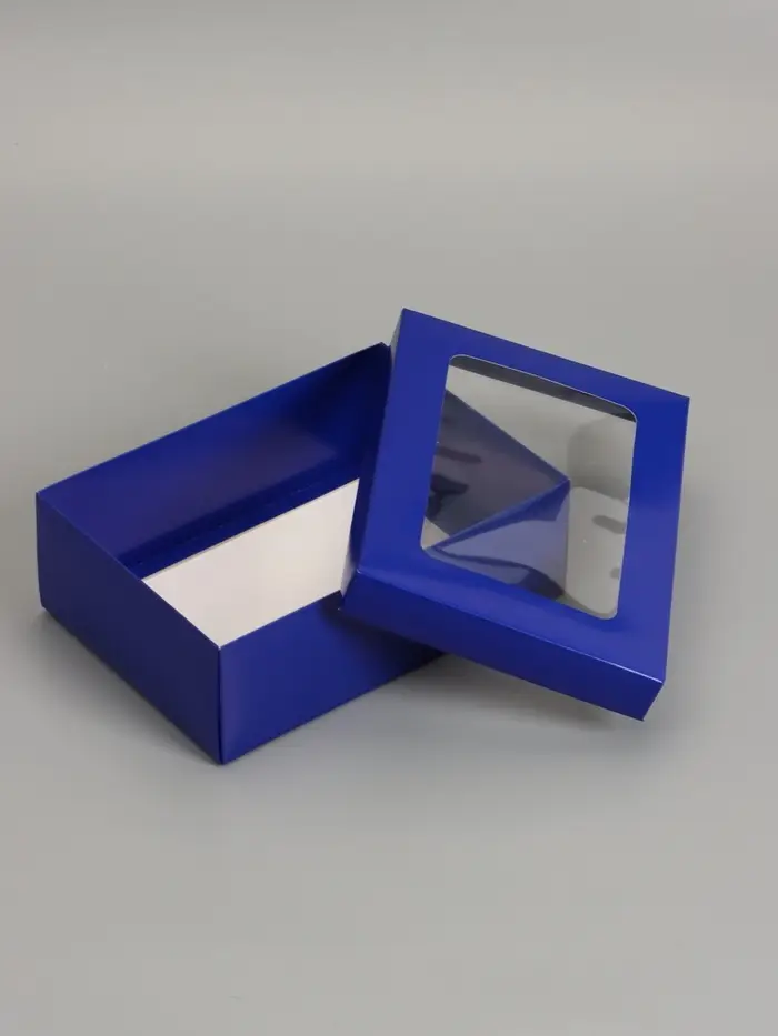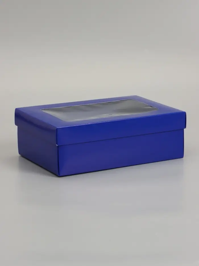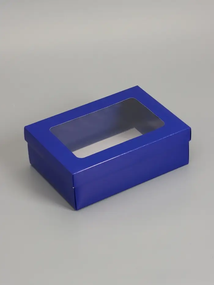 Коробка складная, крышка-дно, с окном, синяя, 24 х 17 х 8 см