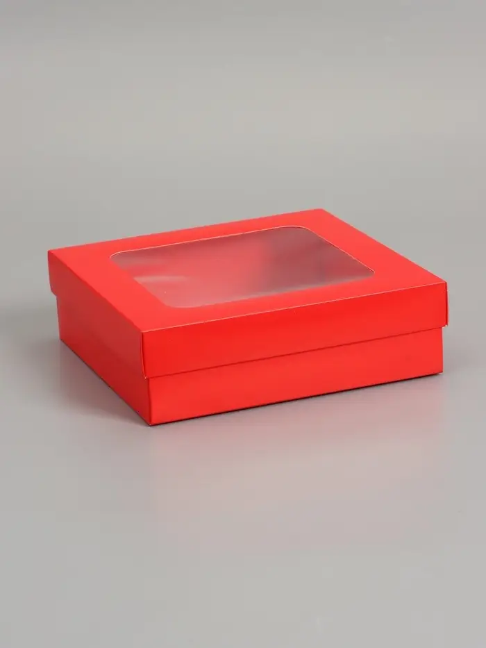 Коробка складная, крышка-дно, красная, с окном 20 х 20 х 6 см