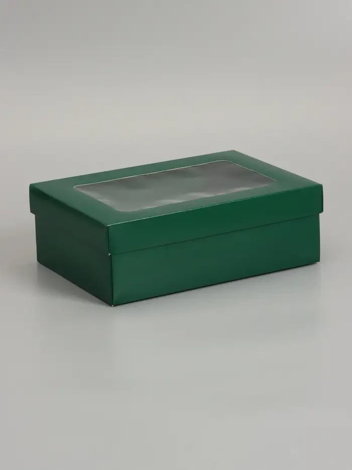 Коробка складная, крышка-дно, с окном, армейский зелёный, 24 х 17 х 8 см