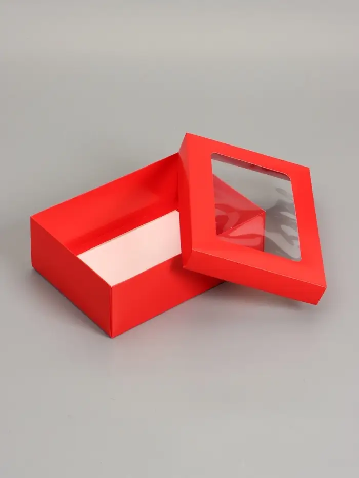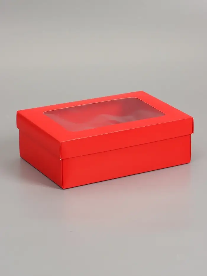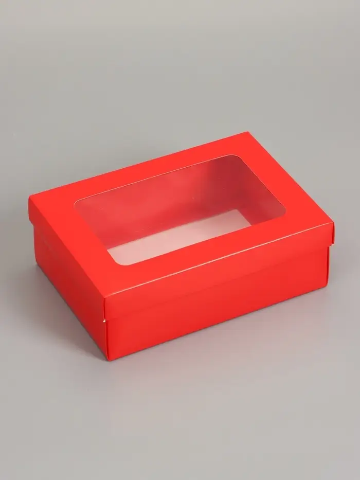 Коробка складная, крышка-дно, с окном, красная, 24 х 17 х 8 см