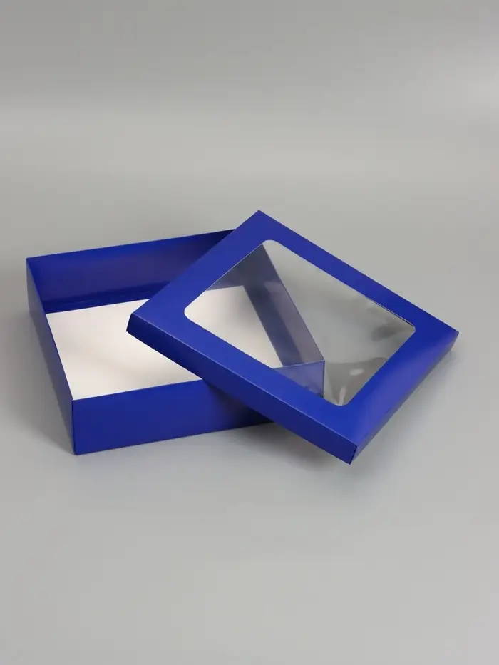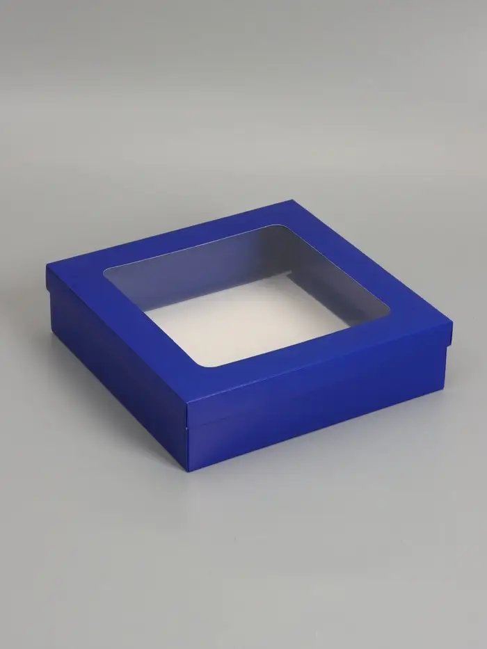 Коробка складная, крышка-дно, синяя, с окном 30 х 30 х 8 см