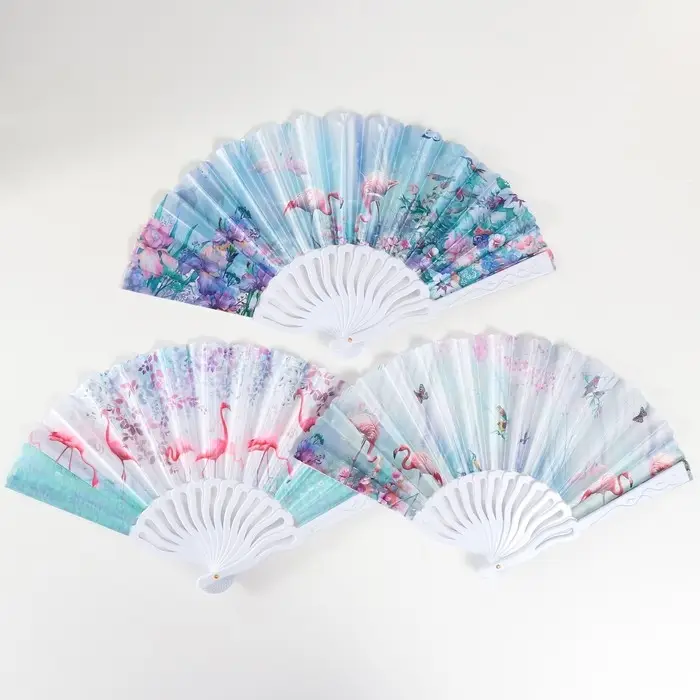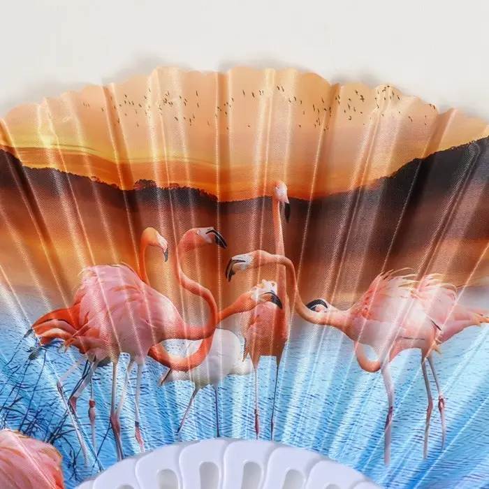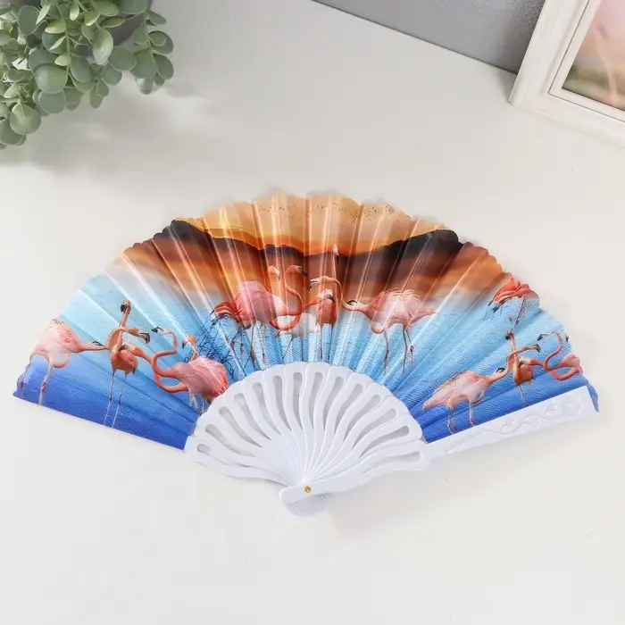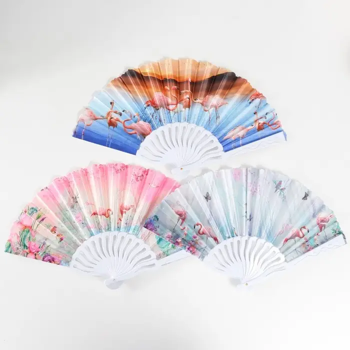 Веер пластик, текстиль "Фламинго" МИКС 23 см