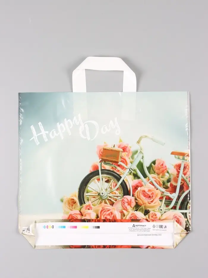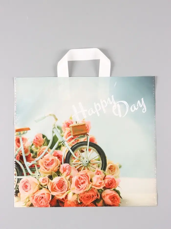 Пакет "Счастливый день", полиэтиленовый с петлевой ручкой, 38 х 34 + 3 см, 70 мкм