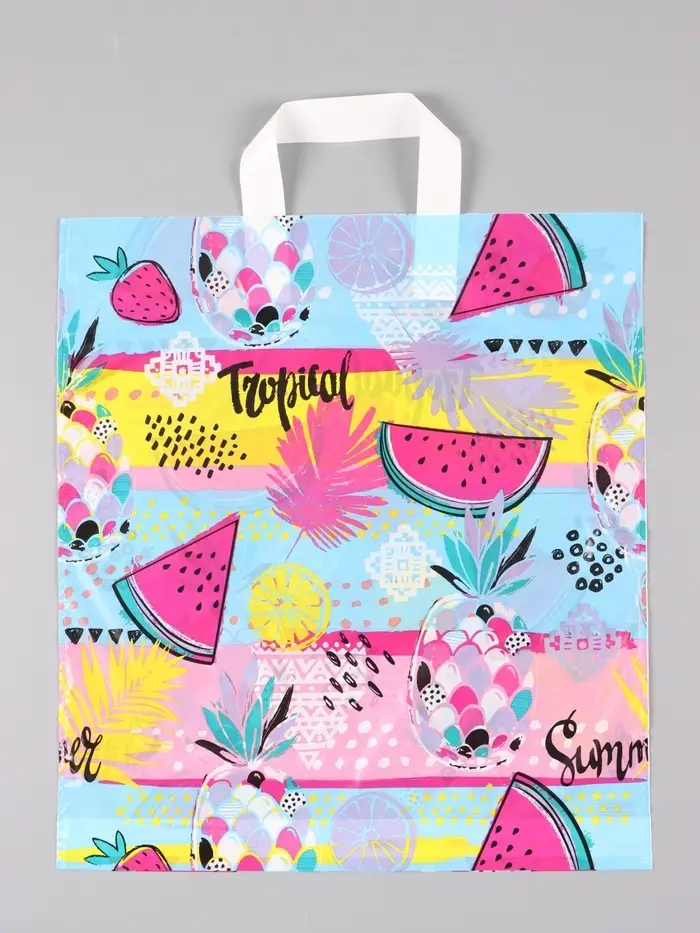 Пакет "Тропические фрукты", полиэтиленовый с петлевой ручкой, 38 х 42 + 3 см, 37 мкм