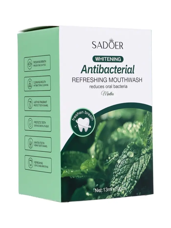 Набор Антибактериального ополаскивателя для полости рта SADOER, мята, 10 шт по 13 мл