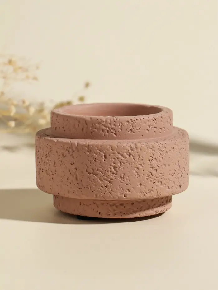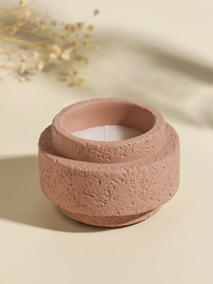 Свеча в вулканическом подсвечнике "Цилиндры" розовая 8,1х8,1х5,4 см