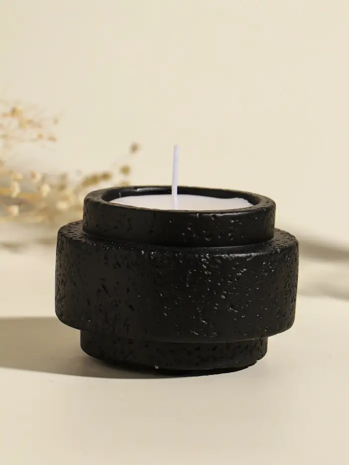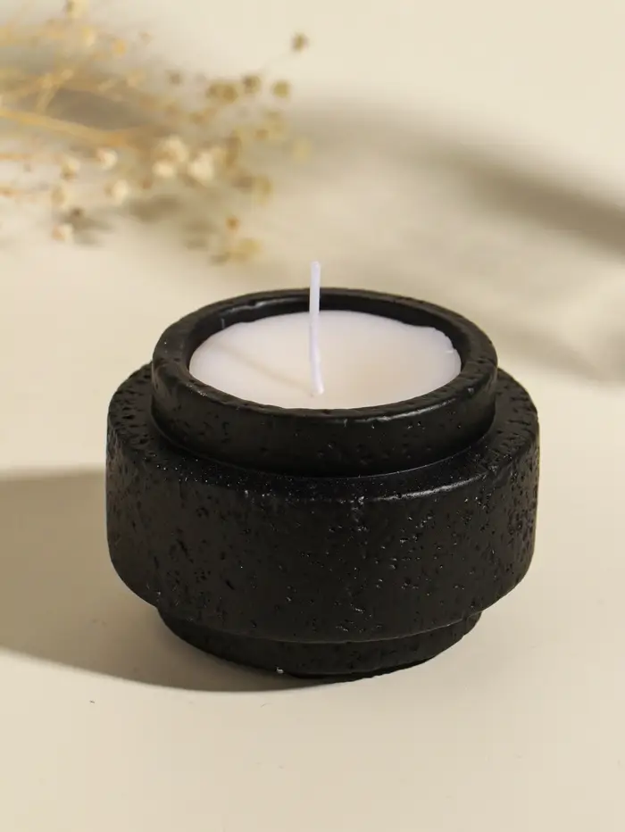 Свеча в вулканическом подсвечнике "Цилиндры" чёрная 8,1х8,1х5,4 см