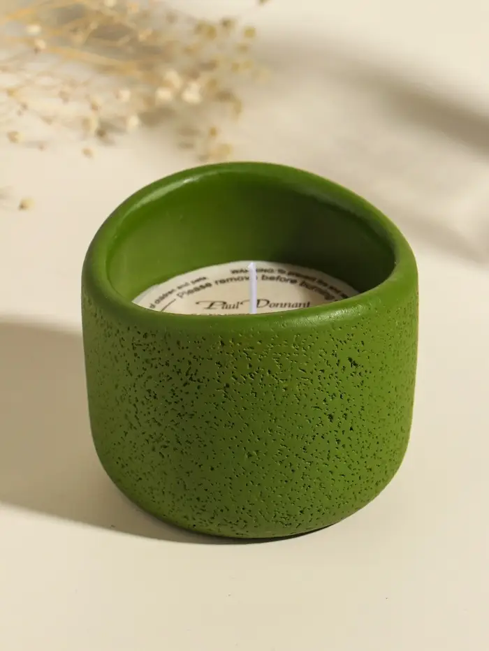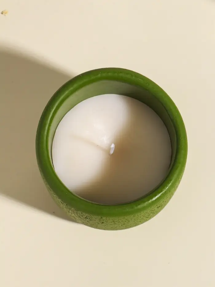 Свеча в вулканическом подсвечнике "Изгиб" зелёная 8,3х8,5х7 см