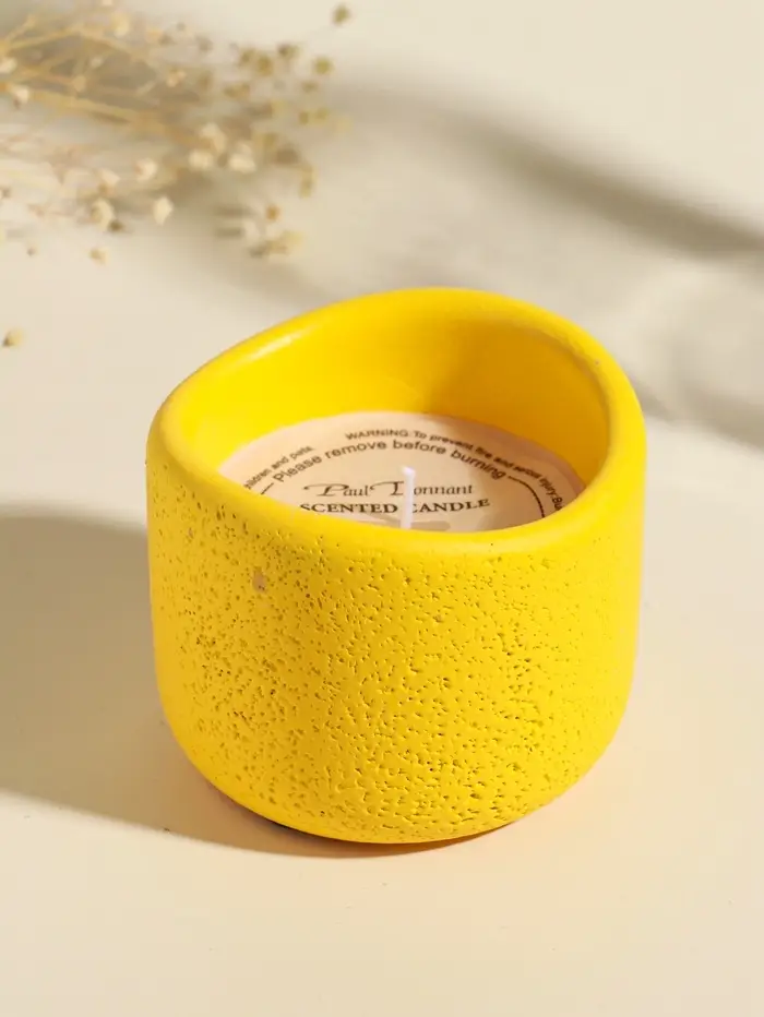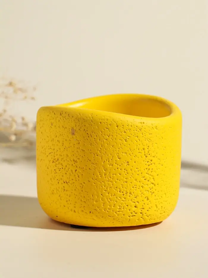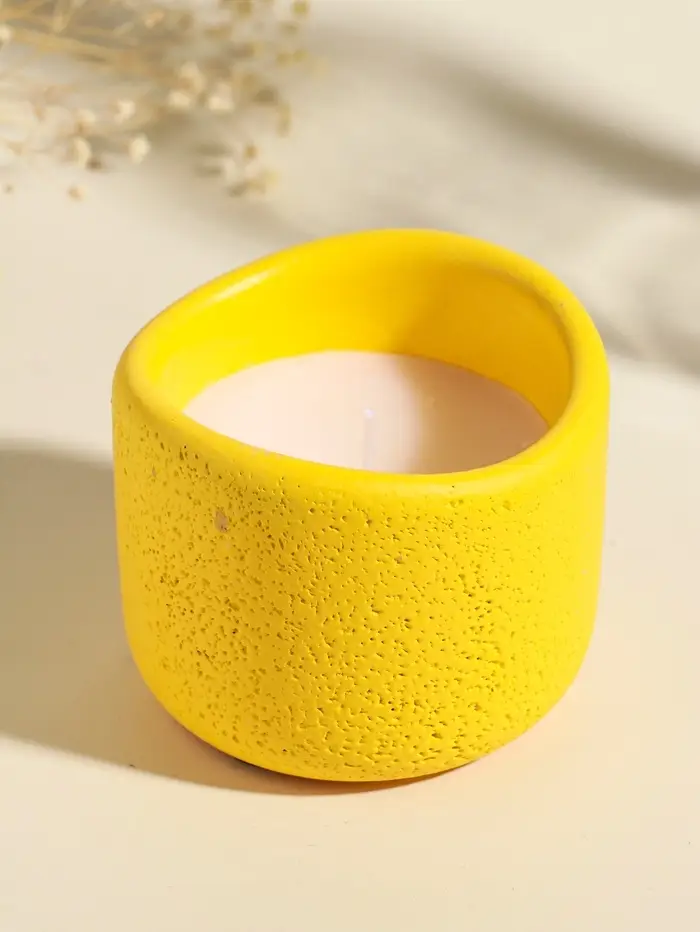 Свеча в вулканическом подсвечнике "Изгиб" жёлтая 8,3х8,5х7 см