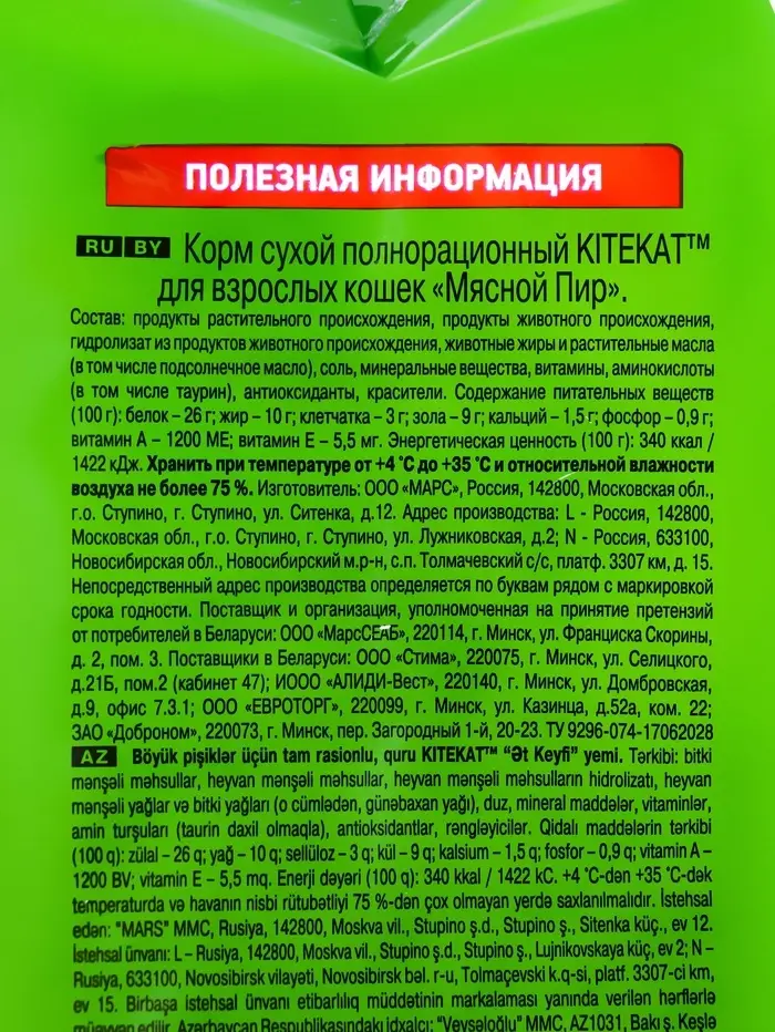Сухой корм для кошек Kitekat, мясной пир, 1.3 кг