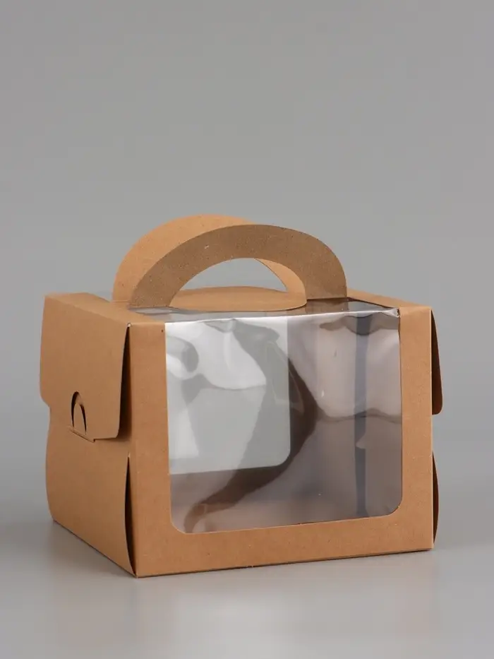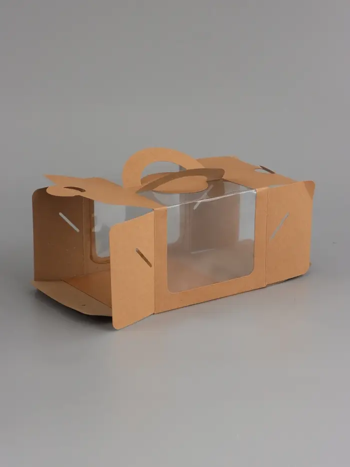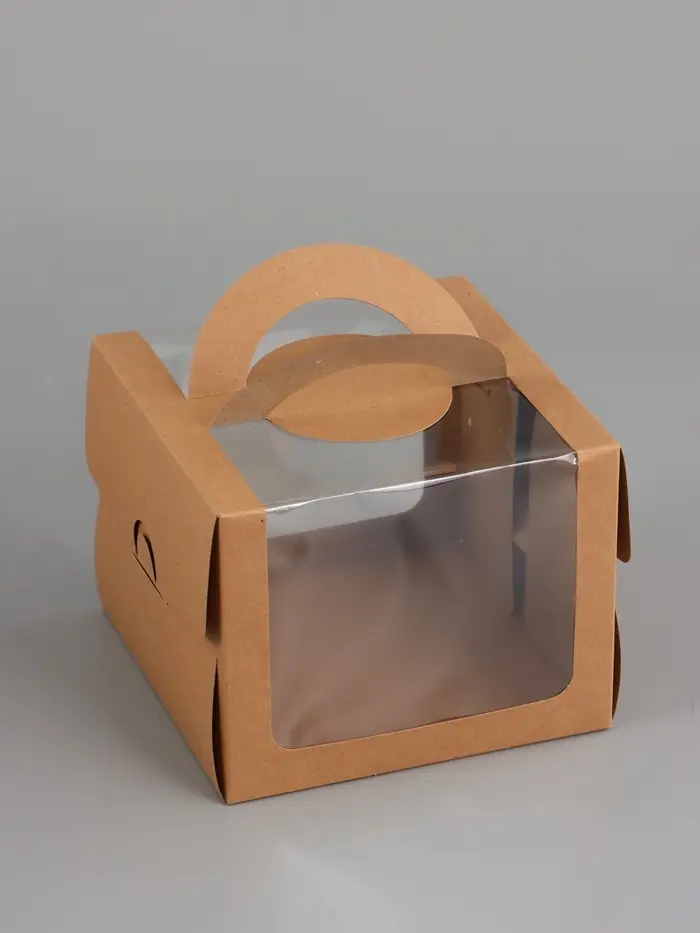 Коробка под бенто-торт с окном, КРАФТ 16 х 16 х 12,5 см