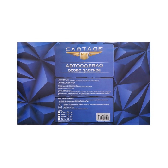 Автоодеяло для двигателя Cartage, 140 х 90 см, особо плотное