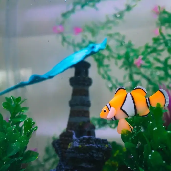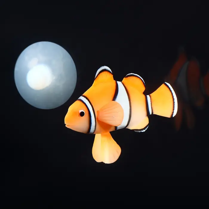 Рыбка изготовлена из высококачественного силикона, который обладает долговечностью и устойчивостью к воздействию воды. Она имеет реалистичную форму и текстуру, имитирующую настоящую рыбу-клоуна. Благодаря этому, она прекрасно вписывается в подводный ландшафт и создает впечатление настоящего живого существа.
