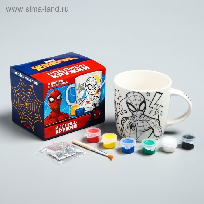 Набор, кружка под раскраску, 250 мл "Супер герой" Человек-Паук