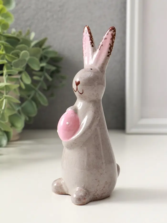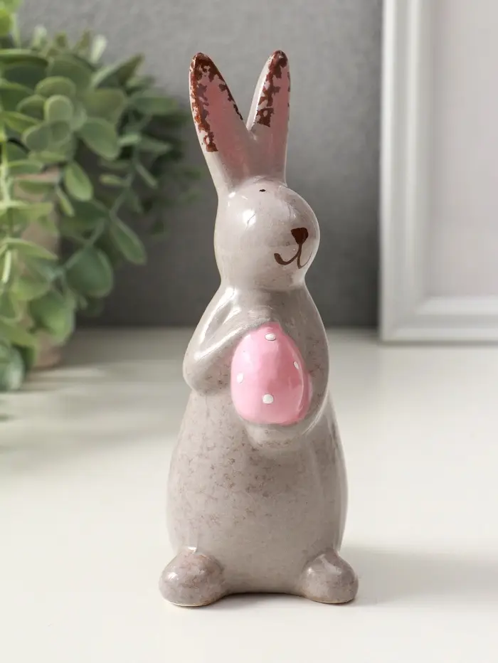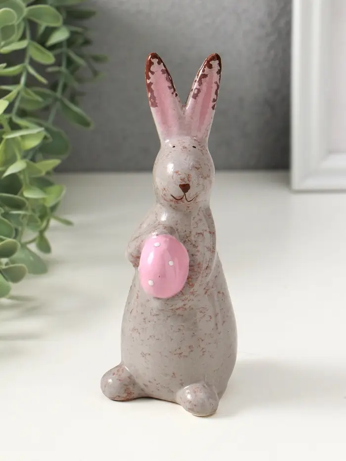 Сувенир керамика "Зайка с пасхальным яичком" серый 5,5х6,2х15 см