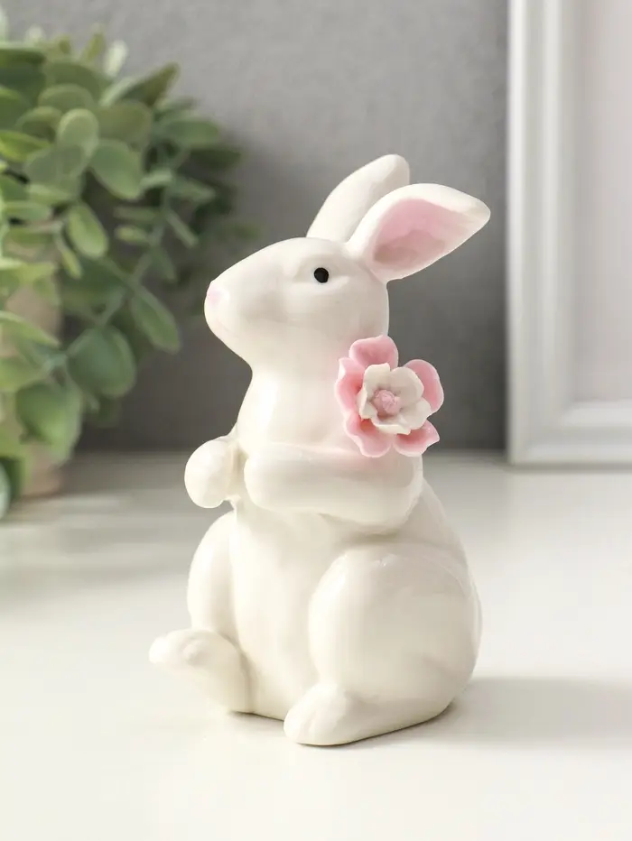 Сувенир керамика "Зайка с цветком" белый 4,5х8х11,8 см