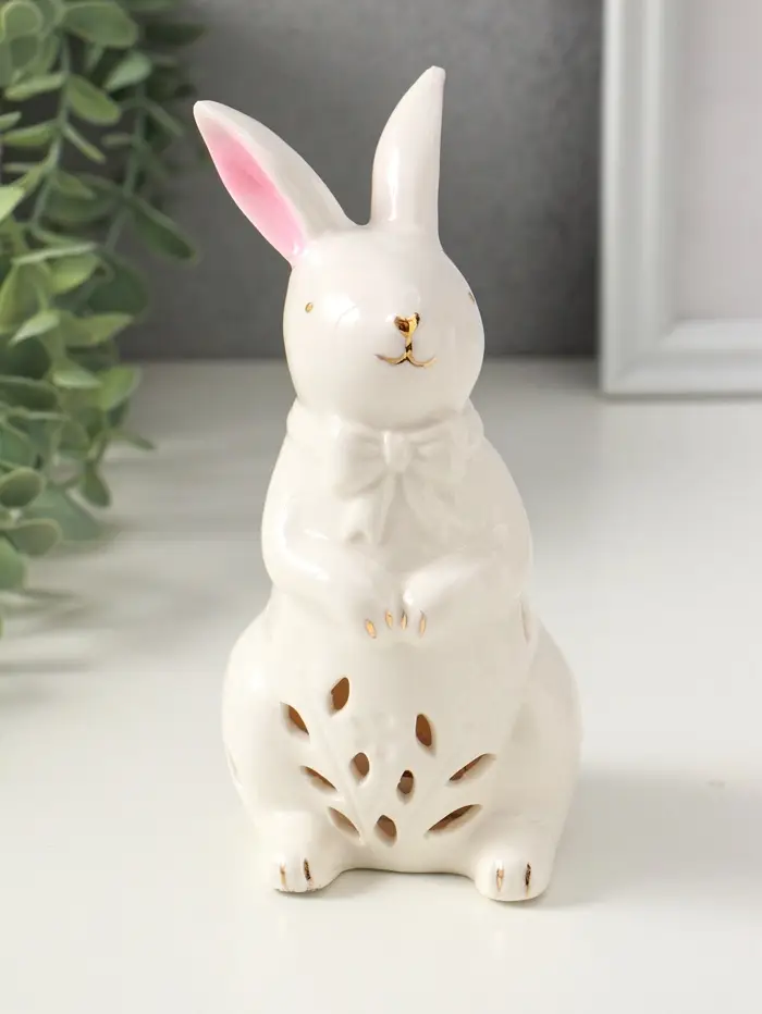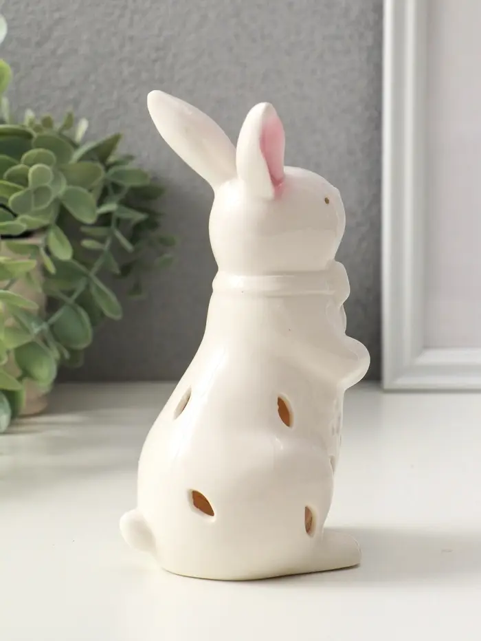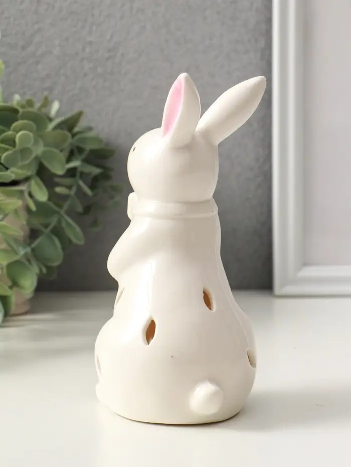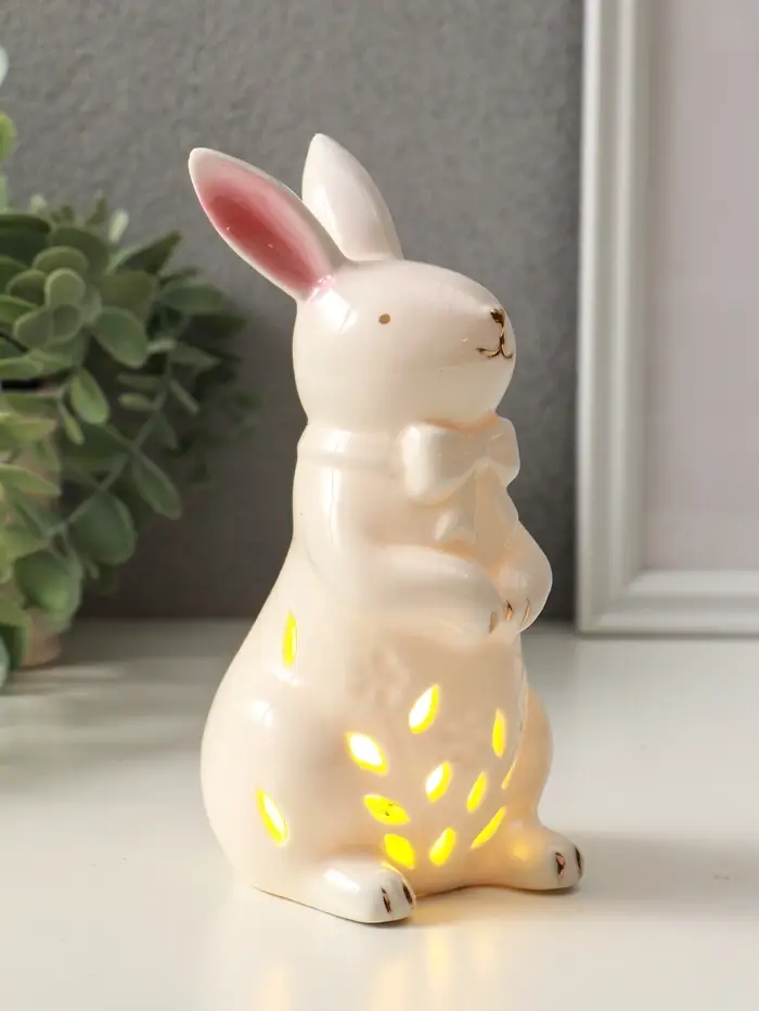 Сувенир керамика свет "Зайка с бантом" белый 7,5х8х15,5 см