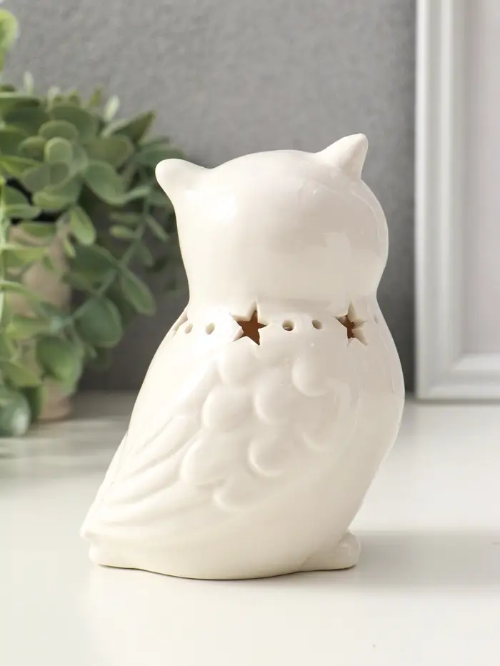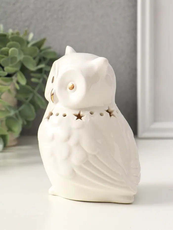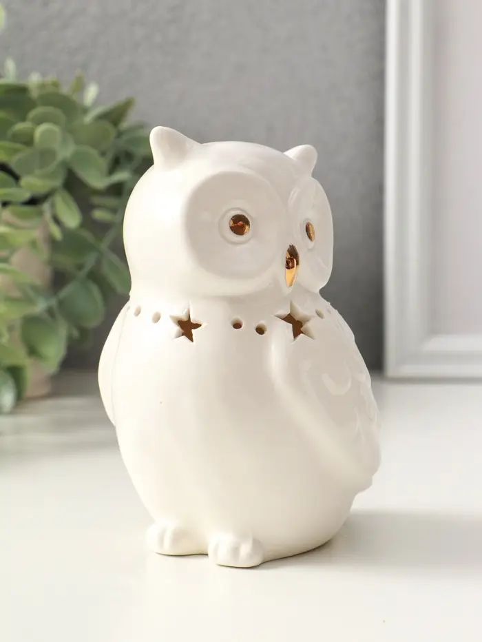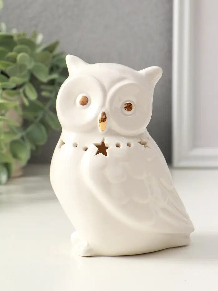 Сувенир керамика свет "Филин с ожерельем из звёзд" белый 9х6,5х13 см