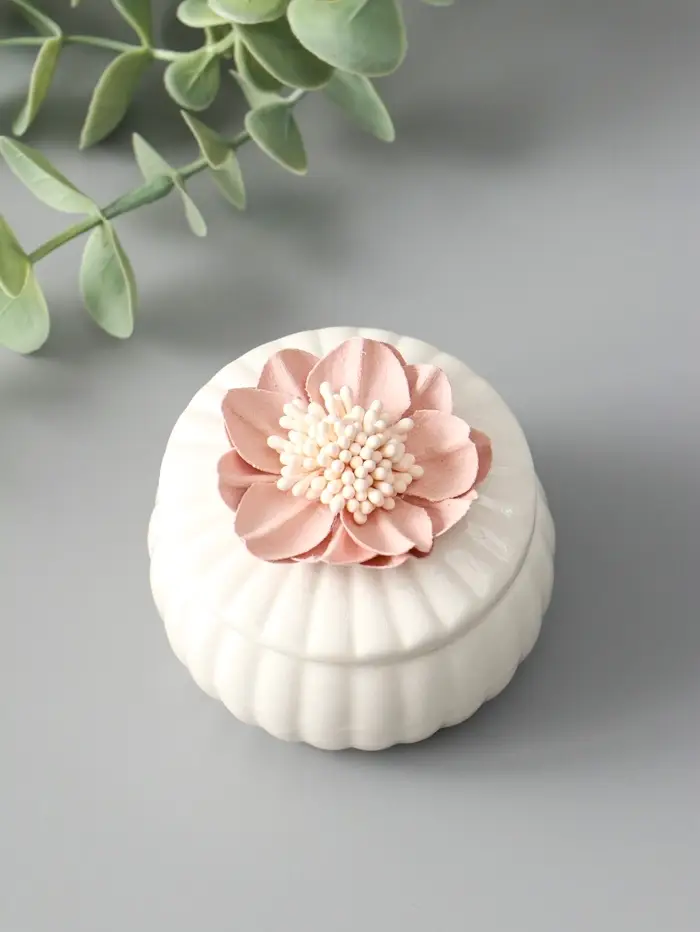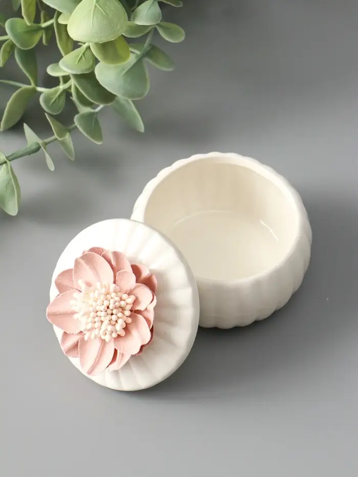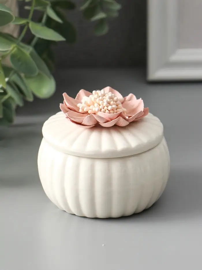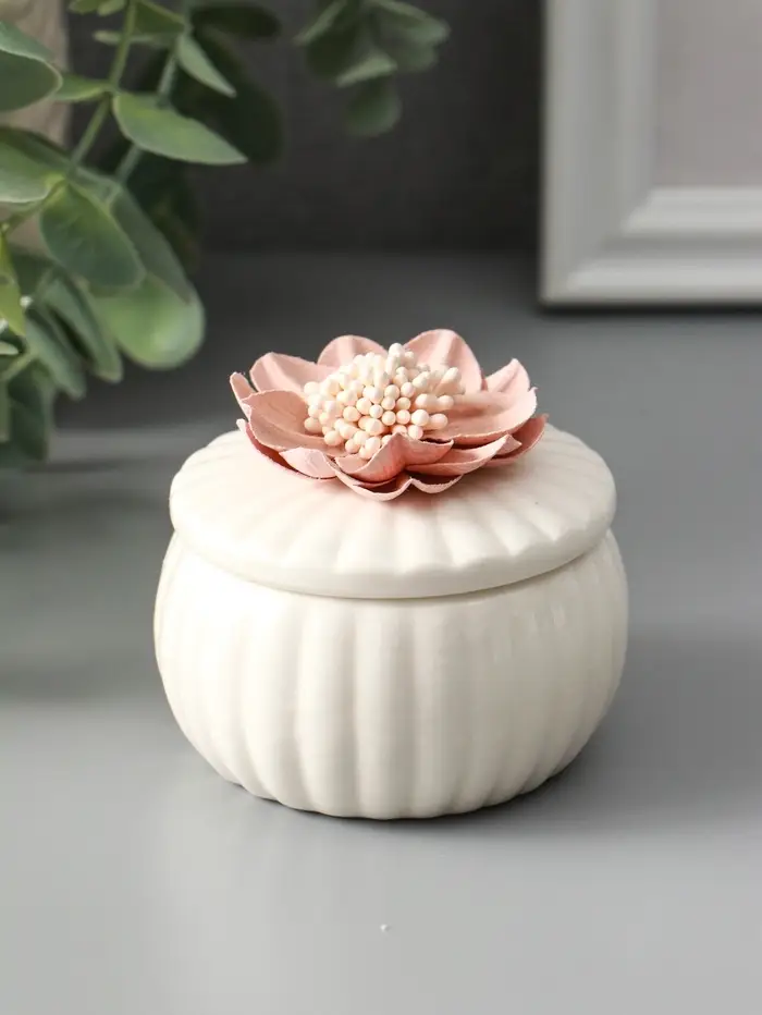 Шкатулка керамика "Розовый цветок" белая 7х7х6,5 см