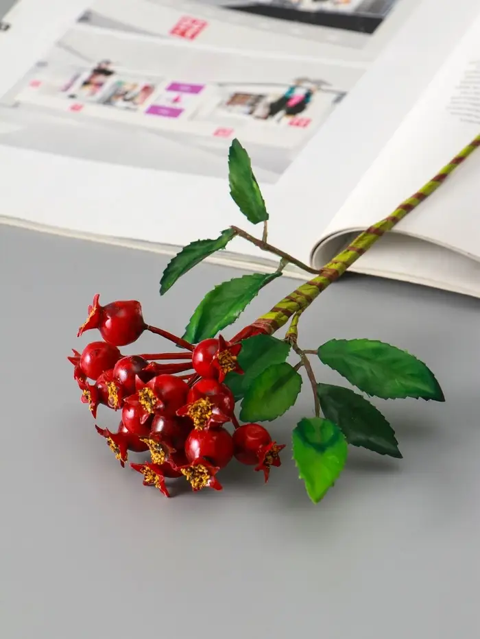 Цветы искусственные "Шиповника пучок" 23 см, красный